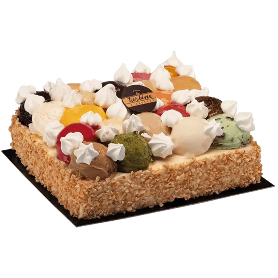 Découvrez l’Arlequin, un dessert glacé haut en couleur pour égayer vos tables de fête ! Composé d’un savoureux assortiment de crèmes glacées et sorbets fruités, le tout délicatement dressé sur un parfait à la vanille onctueux. Une création artisanale raffinée, parfaite pour partager un moment de douceur et de fraîcheur en famille ou entre amis.